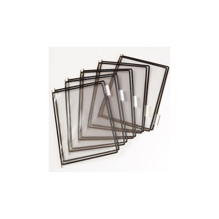 Paquet de 10 poches A4 à pivots en PVC renforcées par un fil d’acier recouvert d’une gaine de couleur. Livré avec 5 cavaliers de repérage. Ouverture de la poche sur le petit côté. Adaptables sur le Pupitre et le Mural Tarifold.