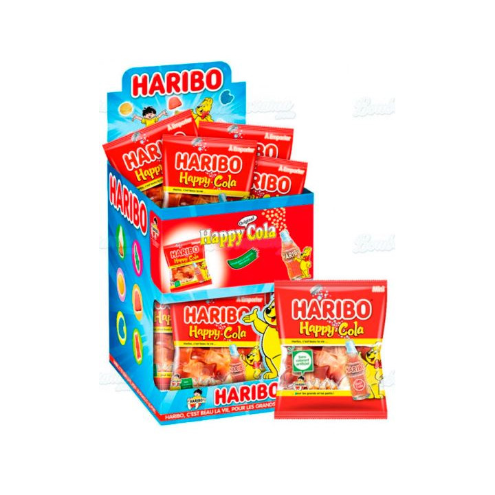 Bonbons gélifiés happy cola. Sachet de 40 grammes. Boîte de 30 sachets