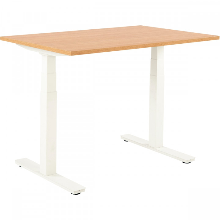 Bureau assis debout L120 cm Boost plateau chêne/piètement blanc. Plateau en mélaminé épaisseur 25 mm. Chants antichoc 2mm. Livré avec boitier de commande. Vitesse de progression maximum 40 mm/s. Hauteur réglable de 65 à 130 cm. Silencieux (<45dB). 3 positions mémorisables. Prise USB et USB-C. Piètement carré et barre stabilisante centrale. Charge maximale 120 kg. Garantie 5 ans.
