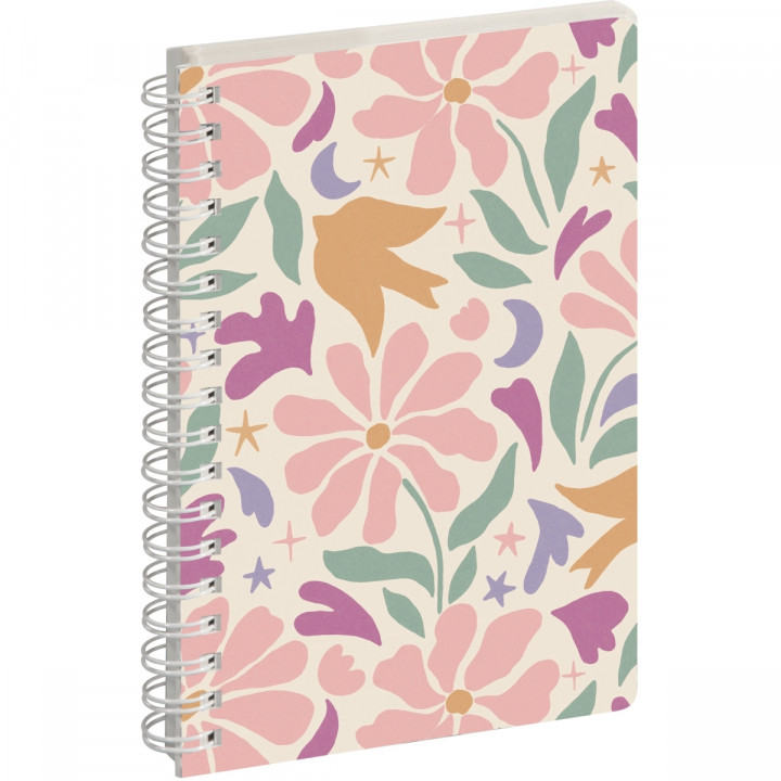 Agenda semainier Paloma 10x15cm Fleurs. Format 10x15cm 16 mois, de Septembre à Décembre Semaine sur 2 pages, à l'horizontale Espace note sur la page de droite Reliure spirale Papier blanc Couverture cartonnée imprimée