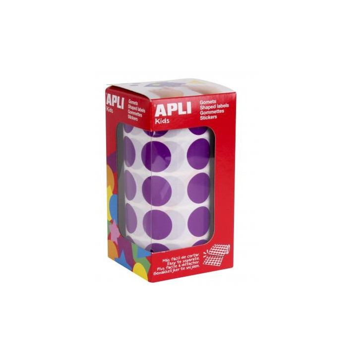 Rouleau de gommettes rondes 20mm LILAS. Rouleau de 1770 gommettes rondes Ø 20 mm, soit 59 bandes prédécoupées de 30 gommettes pour les répartir plus aisément entre les enfants.