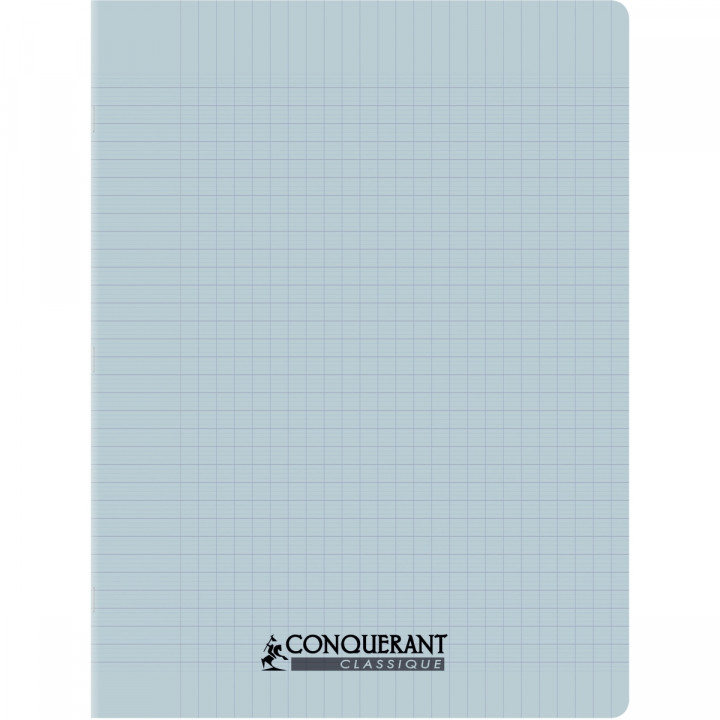 Piqûre 96 pages CONQUERANT, 24x32 cm, seyès, couv PP bleu pastel. Papier blanc 90g.
