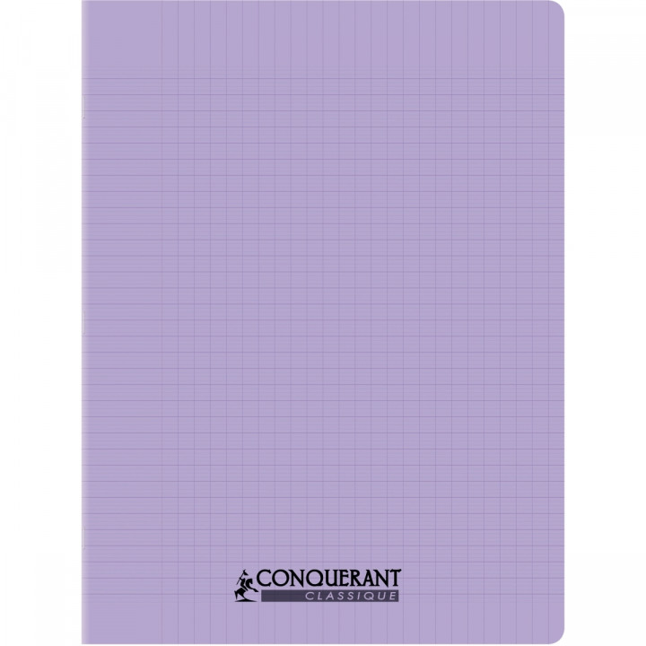 Piqûre 96 pages CONQUERANT, 24x32 cm, seyès, couv PP lilas. Papier blanc 90g.