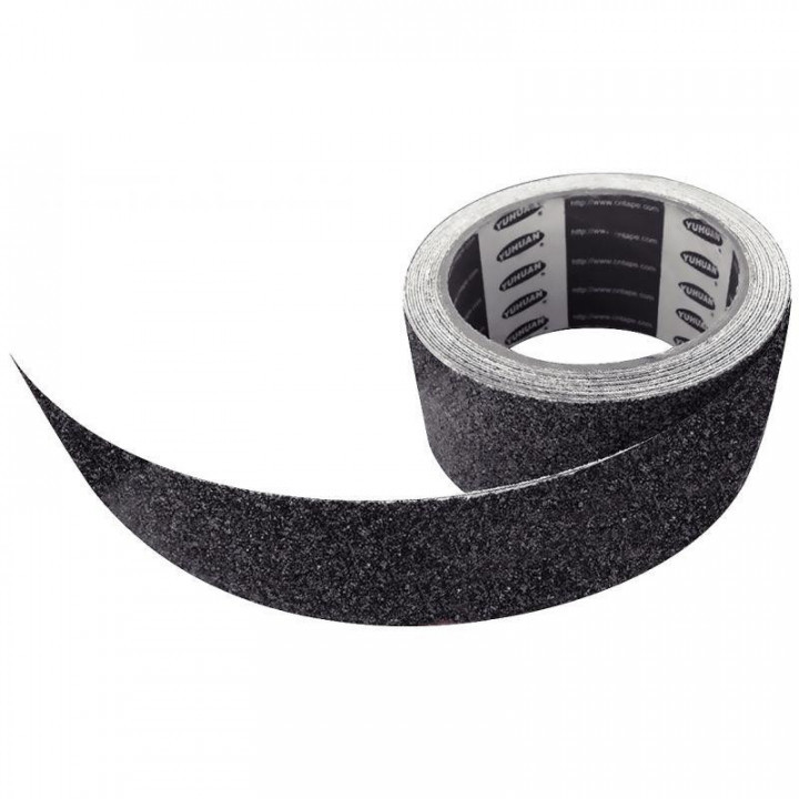 Rouleau adhésif antidérapant noir 5mx50mm. Ruban antidérapant longue durée : résiste à l'eau, aux huiles, aux fluides hydrauliques, aux détergents, aux solvants, aux U.V. et aux températures extrêmes/Ces rubans sont composé de PVC recouvert de sable de quartz.Face inférieure avec adhésif protégé par bande décollable.Dimensions : 5 m x 50 mm épaisseur : 0.5 mm