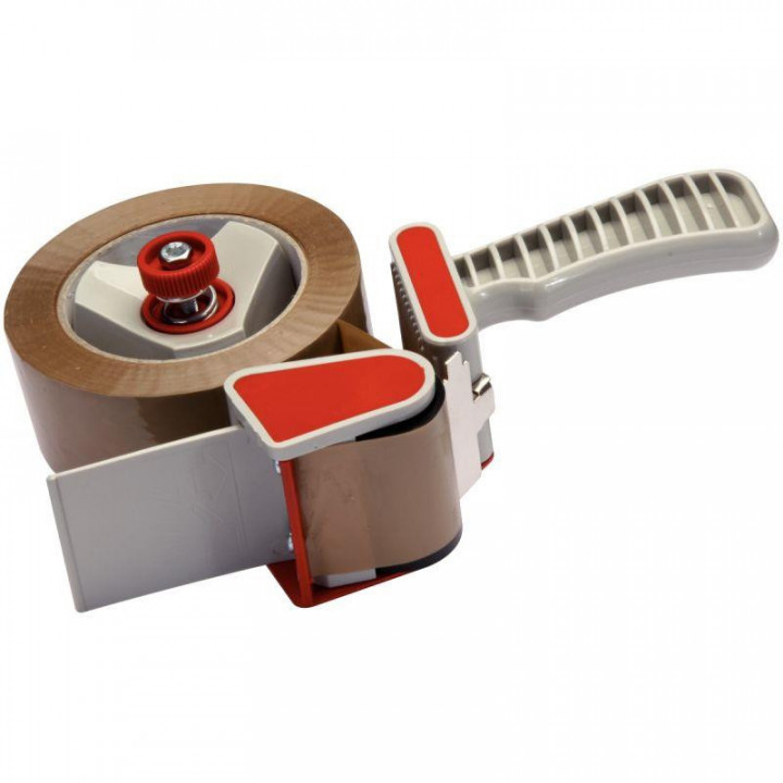 Dévidoir manuel de rubans adhésifs. Couteau métallique, pour ruban 50 mm x 66 m ou 100 m. Dévidoir ultra léger, frein du déroulement rouleau réglable.Son couteau métallique lui confère une coupe nette et précise.