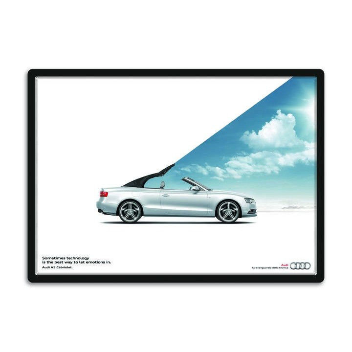 Pochette PVC 300 microns pour A4. Ouverture sur trois côtés permettant une insertion facile et rapide du document. Fermeture par 3 bandes magnétiques. Affichage double face sur vitre grâce au cadre recto-verso.