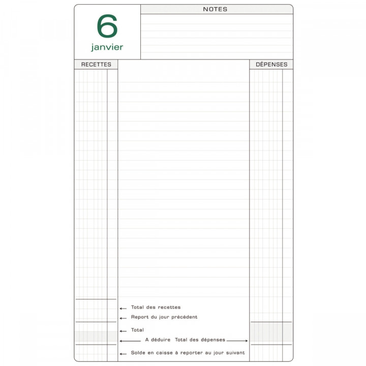 Recharge de feuillets pour perpétuel de caisse. Format : 16 x 24 cm. Pour reliure perpétuel de caisse. 1 jour par page.