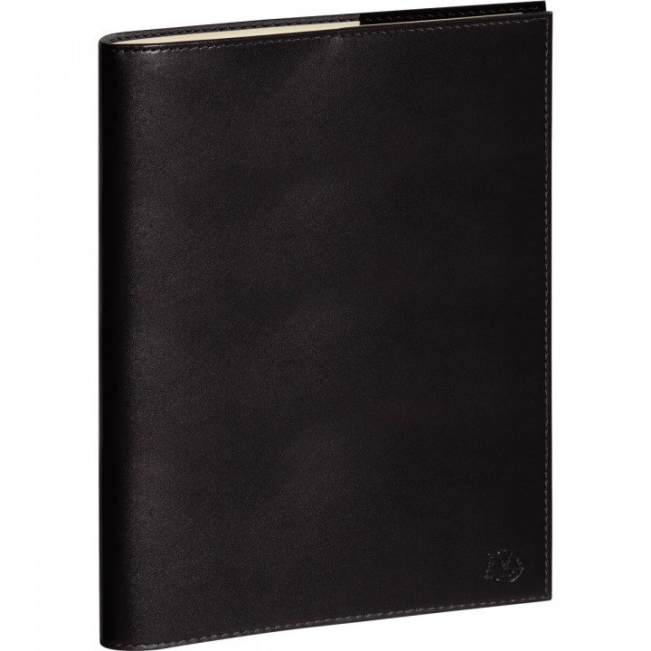 Agenda semainier Volga 21x29,7cm noir. Format : 21 x 29,7 cm. 12 mois de Janvier à Décembre. La semaine sur 2 pages à la verticale. Papier ivoire impression bleu. 7 jours complets. Multilingue. Couverture toucher cuir. Livret alphabétiques pour numéro de téléphone. Répertoire.