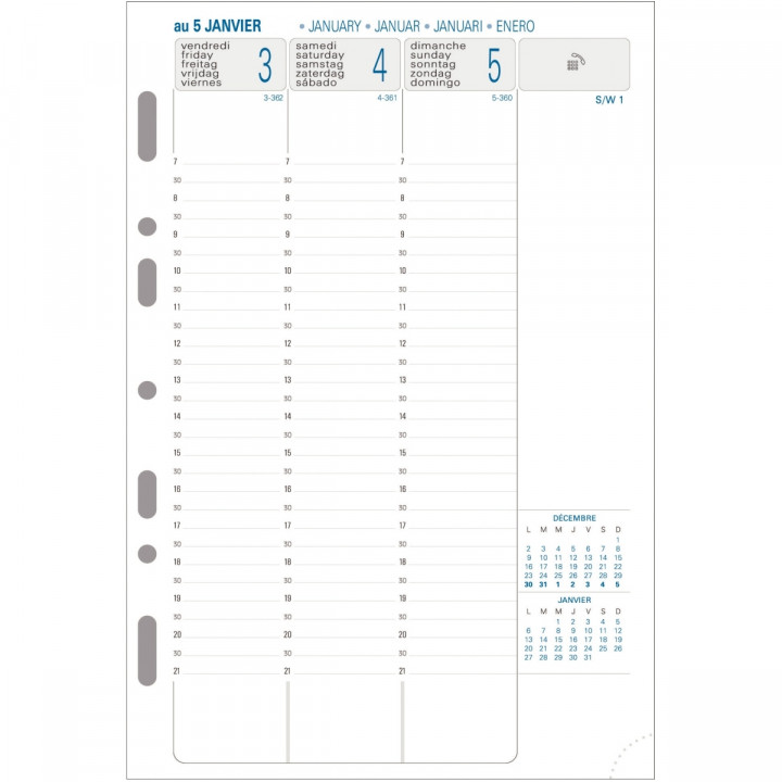 Recharge millésimée Exatime21 16mois blanc. Format : 14,2 x 21 cm. 16 mois de Septembre à Décembre. 1 semaine sur 2 pages à la verticale. Papier blanc.