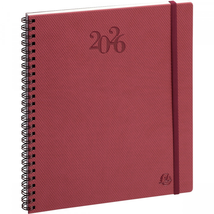 Agenda semainier Swan 15x17cm bordeaux. Format : 15 x 17 cm. 12 mois de Janvier à Décembre. La semaine sur 2 pages à la verticale. Couverture souple grain fantaisie avec fermeture élastique. Papier ivoire. Multilingue. Coins détachables. Spirale métal.