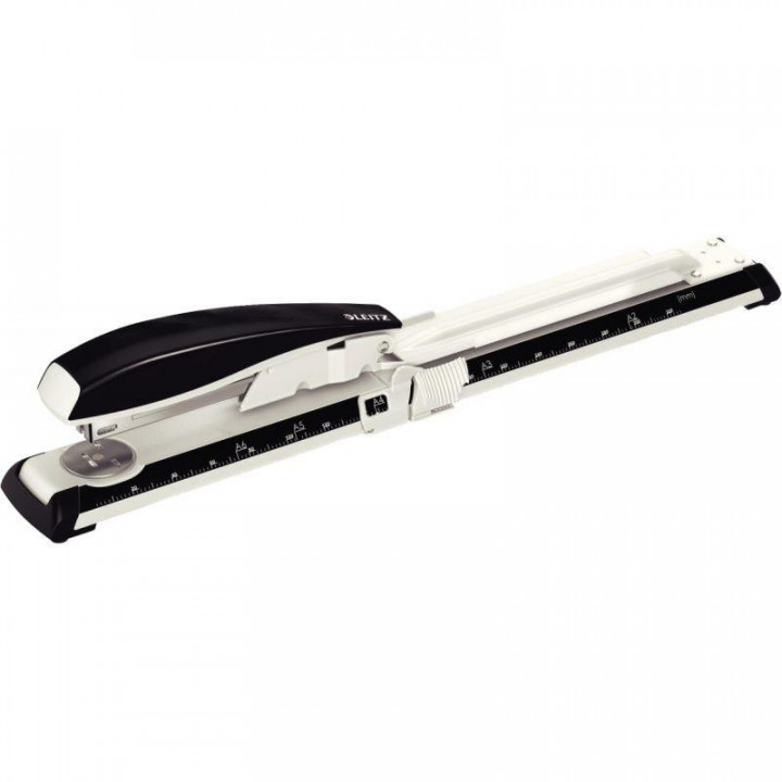 Agrafeuse à long bras Nexxt 40 feuilles. Contenance 210 agrafes (40 feuilles de 4mm). Technologie Direct Impact brevetée. Réglette de guidage jusqu'à 300mm facilement réglable, graduation latérale. Chargement par le haut. Longueur 421mm. Garantie 10 ans.
