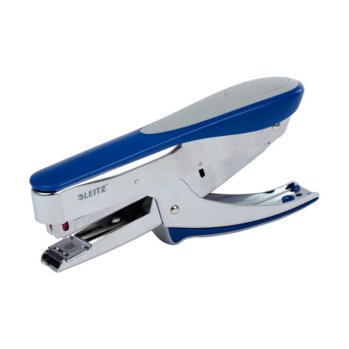 Agrafeuse pince Leitz 30 feuilles bleu et gris. Agrafe jusqu'à 30 feuilles de papier (80 g/m²). Chargement facile par le haut. Profondeur de gorge: 54 mm. Enclume réglable pour agrafage et brochage. Pour les agrafes 24/6 et 26/6. Garantie 10 ans en utilisant des agrafes Leitz. Longueur 155mm. Garantie 10 ans.