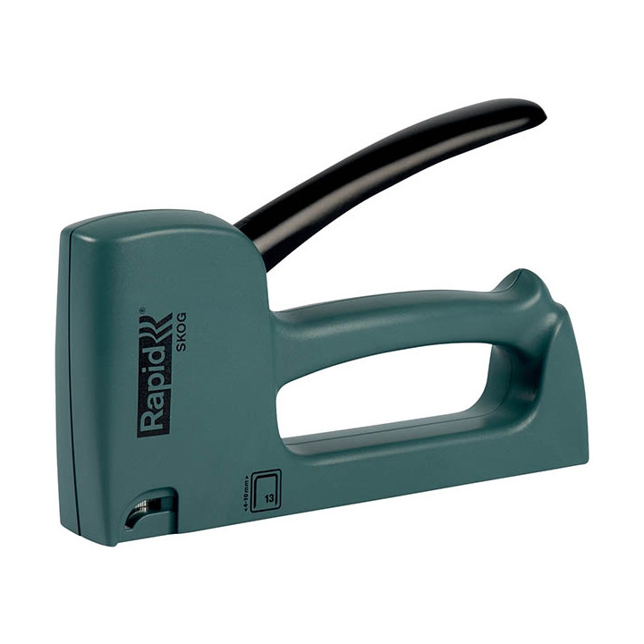 Autocloueur Rapid R13 vert. Mécanisme tout acier. Contenance 156 agrafes. Coque plastique 90% recyclé. Garantie 3 ans.