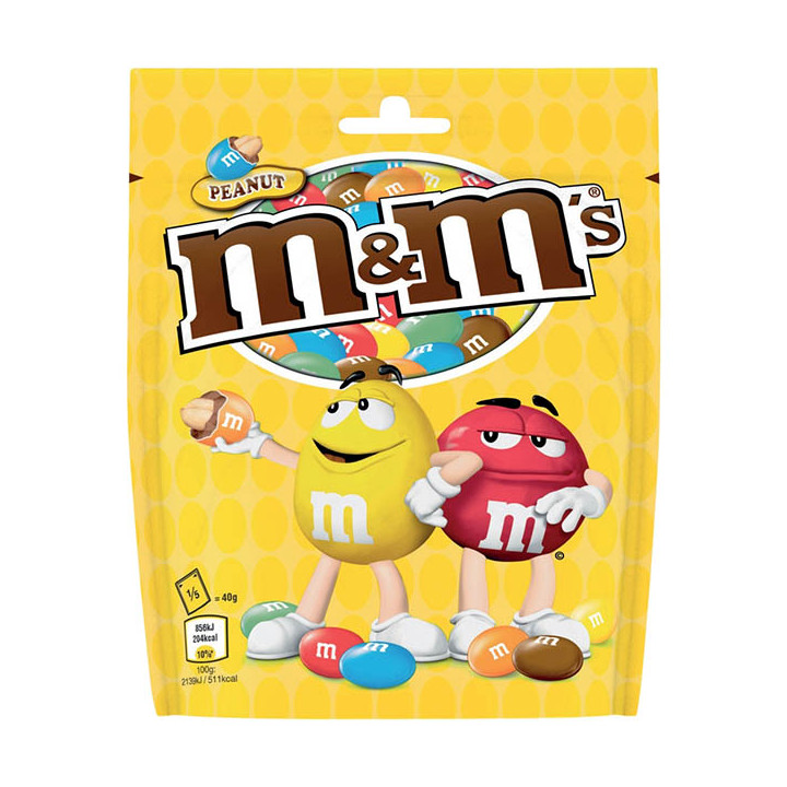 M&MS chocolat PEANUT 200G. Cacahuètes grillées, enrobées d'un délicieux chocolat au lait, enveloppées dans une couche croustillante et colorée Savoureux toujours plein de plaisir