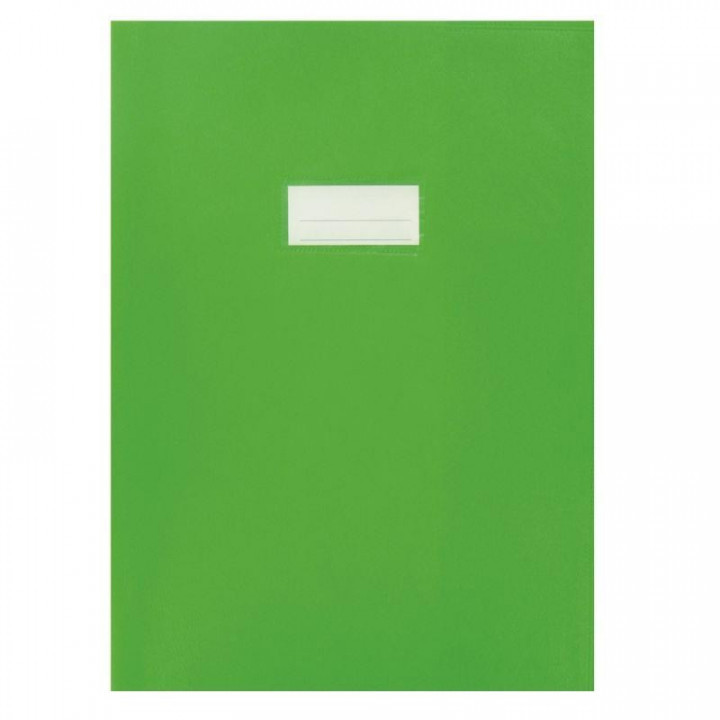 Paquet de 10 protèges-cahier épaisseur 21/100ème 21x29,7cm PVC coloris vert. Qualité supérieure. Opaque sans rabat. Avec porte-étiquette et étiquette.