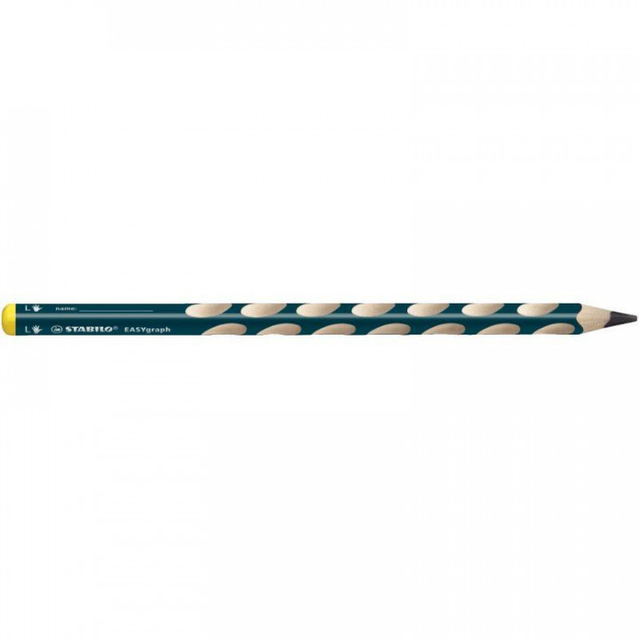 Crayon graphite Easygraph HB gaucher. Crayon graphite, mine HB robuste, diamètre 3.15 mm. Spécialement conçu pour les gauchers, avec son corps large triangulaire à empreintes préformées induisant un bon positionnement des doigts. Idéal dès 5 ans, mais recommandé également tout au long de la scolarité, pour écrire sans crispation. Vernis anti-salissure sur le corps du crayon, tête trempée. Bois certifié PEFC.