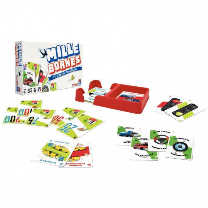 1000 Bornes. Jeu traditionnel français passionnant dont le but est de franchir 1000 kilomètres en parant intelligemment les embûches de ses adversaires. De 2 à 8 joueurs A partir de 6 ans