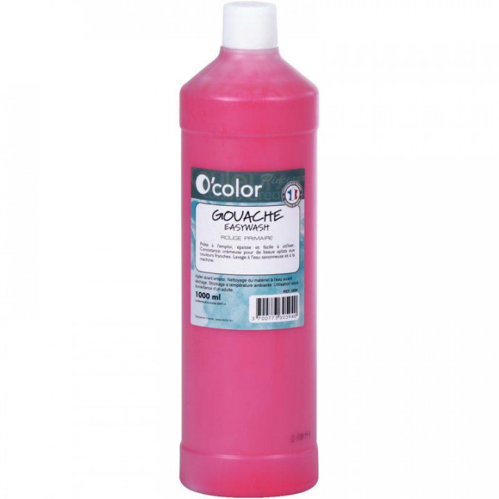 Flacon 1 L de gouache liquide économique coloris O'COLOR magenta. Gouache EASYWASH lavable à l'eau savonneuse et à la machine. Prête à l'emploi, épaisse et facile à utiliser. Consistance crémeuse pour de beaux aplats aux couleurs franches. Agiter avant emploi. Nettoyage du matériel à l'eau avant séchage. Stockage à température ambiante.