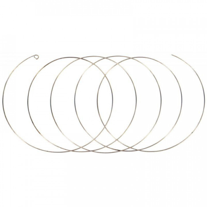 Sachet de 10 bracelets fil mémoire, 5 spirales diamètre 7 cm. Il s'adapte à chaque poignet, il suffit d'enfiler les perles de bois après les avoir peintes ou toutes autres perles et d'arrêter le bracelet avec une perle à écraser. Pas besoin de fermoir, les 5 spirales maintiendront le bracelet autour du poignet.Epaisseur du fil : 0.5 mm.