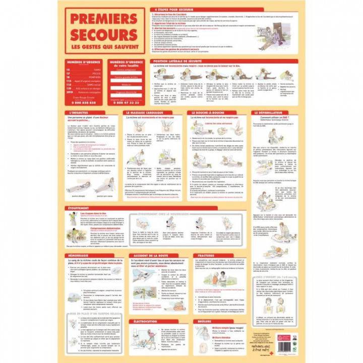 Poster en PVC 76x52 le 1er secours. Poster pédagogique effaçable à sec. Dim l. 52 cm x h. 76 cm.