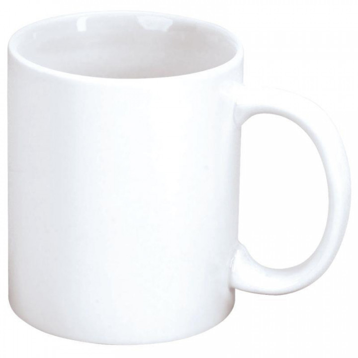 Lot de 6 mugs en porcelaine. Porcelaine blanche émaillée. Contact alimentaire. A décorer avec des feutres porcelaine ou du vernis céramique. Dimensions : Ø.8 x H.9.6 cm.