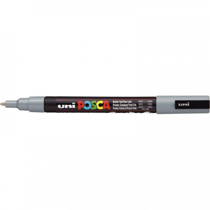 Marqueur Posca pointe fine ogive gris. Les couleurs sont denses, opaques, couvrantes, superposables et ne pâlissent pas à la lumière. L'encre est inodore. S'applique sur tous supports : papier, bois, plastique, verre, métal… Peint, dessine, écrit et marque. Pour des applications illimitées !