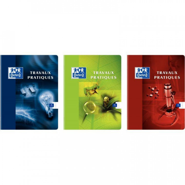 Cahier travaux pratiques OXFORD, piqûre 96 pages, format 17x22 cm, seyès 90g / uni blanc 120g, couverture carte, coloris assortis. Papier satiné Optik, papier dessin blanc, couverture pelliculée lavable.