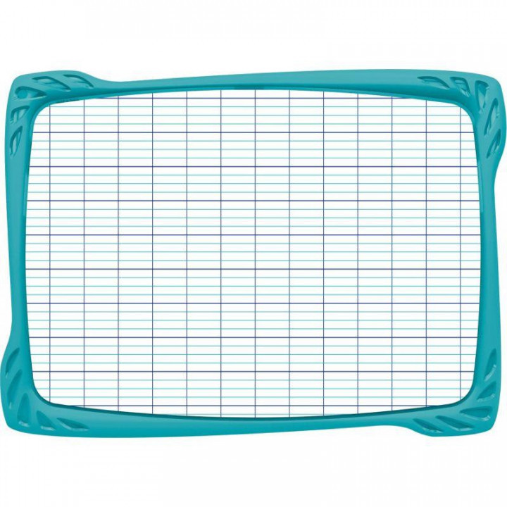 Ardoise effaçable à sec uni/seyès incassable. En plastique souple incassable, 1 face unie, 1 face seyès. Dimensions : 27.5x20cm Coloris : bleu
