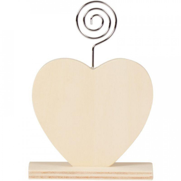 Lot de 6 porte-photos coeur en bois. A décorer. Dimensions (L x l x H): 9 x 3,5 x 13 cm.