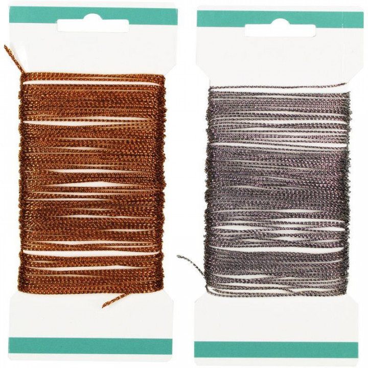 Lot de 2 bobines de 10 m de fil pailleté, coloris or et argent. Produit multi usage pour suspendre les décorations de Noël au sapin ou personnaliser les paquets cadeaux...