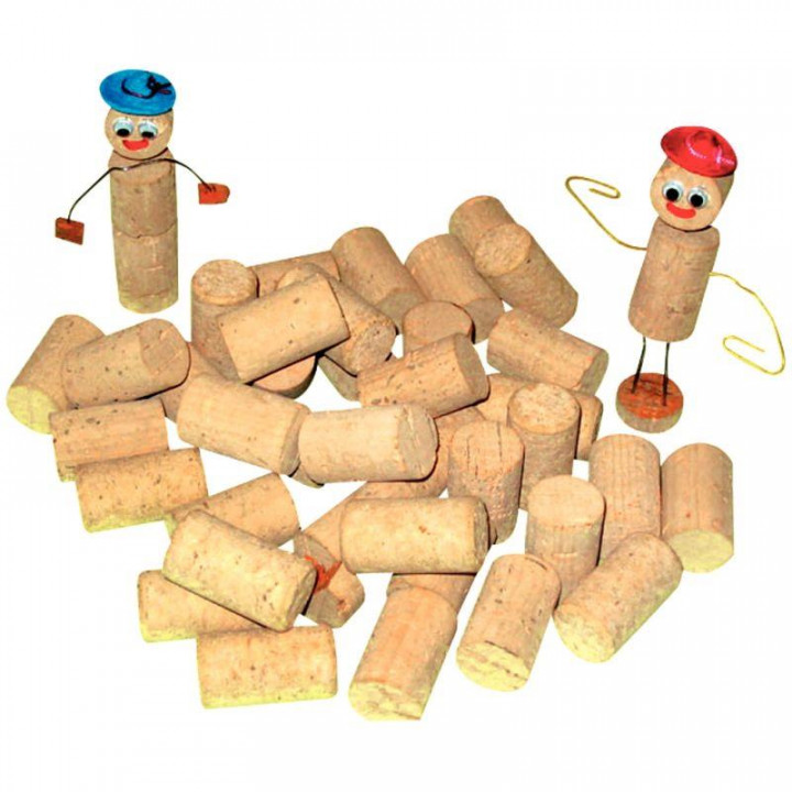 Sachet de 50 bouchons en liège. Formes et longueurs assorties (2 à 4 cm). Pour réaliser des animaux rigolos, des personnages ou autres formes fantaisies. Se découpe, se colle et se peint.