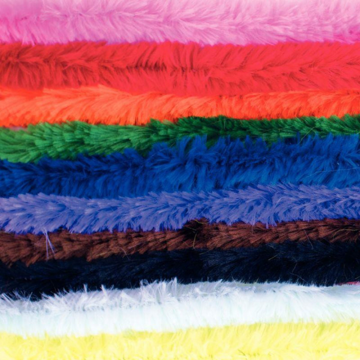 Sachet de 60 chenilles maxi, diamètre 20 mm et longueur 50 cm coloris assortis. Dès 3 ans. Fil métallique habillé de poils, idéal pour tout support. Maniable, il se tord, s’enroule, se tresse… Parfait pour créer de drôles de personnages, des fleurs, des animaux et tout ce que dicte l’imagination des petits. 10 coloris assortis