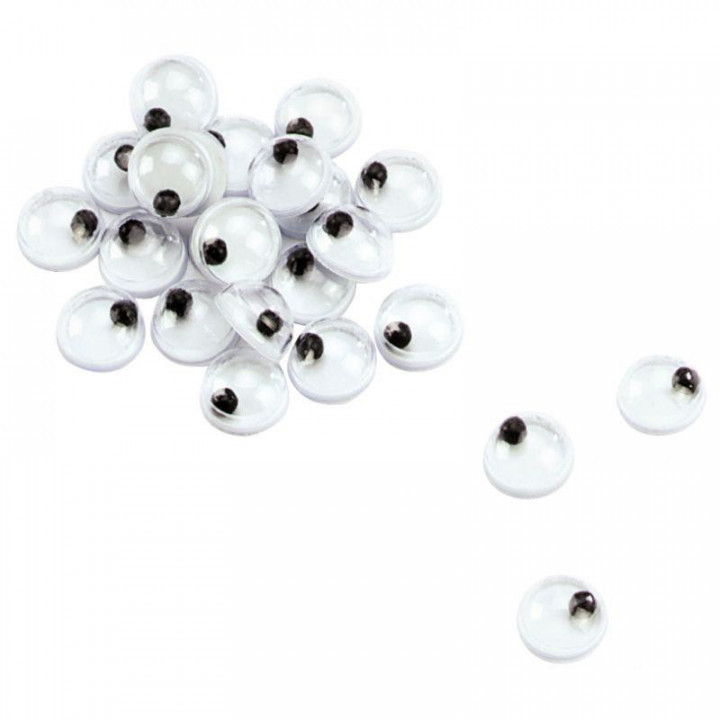 Sachet de 50 yeux mobiles à coller diamètre 5 mm.
