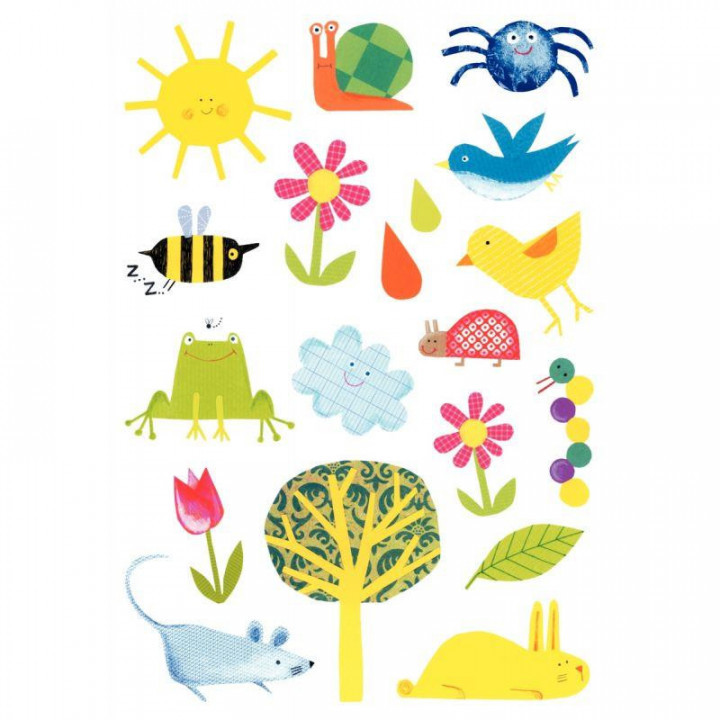 Pochette de 99 maxi gommettes jardin, adhésives repositionnables. 6 planches : 2 motifs x 3 planches. Dimensions planche : 14,8 x 21 cm. Ludiques, éducatives, décoratives et gratifiantes pour les enfants ne sachant pas encore dessiner. Permet d'appréhender des univers de formes, de thèmes différents et de s'amuser en créant ses propres mises en situation.