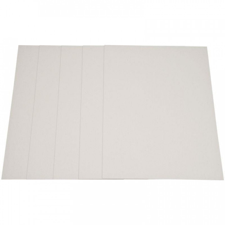 Paquet de 5 feuilles de carton épais, 2 côtés gris, format 60 x 80 cm, 1230 g épaisseur 2 mm.