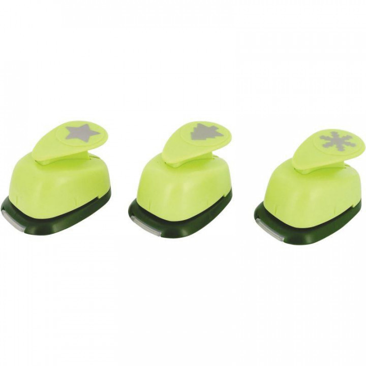 Boite de 3 perforateurs déco Noêl assortis. Fabriquez vos gommettes, vos confettis. Décorez vos cartes de voeux, vos enveloppes. Donnez vie à vos papiers. Dimension d'un motif : 25 mm