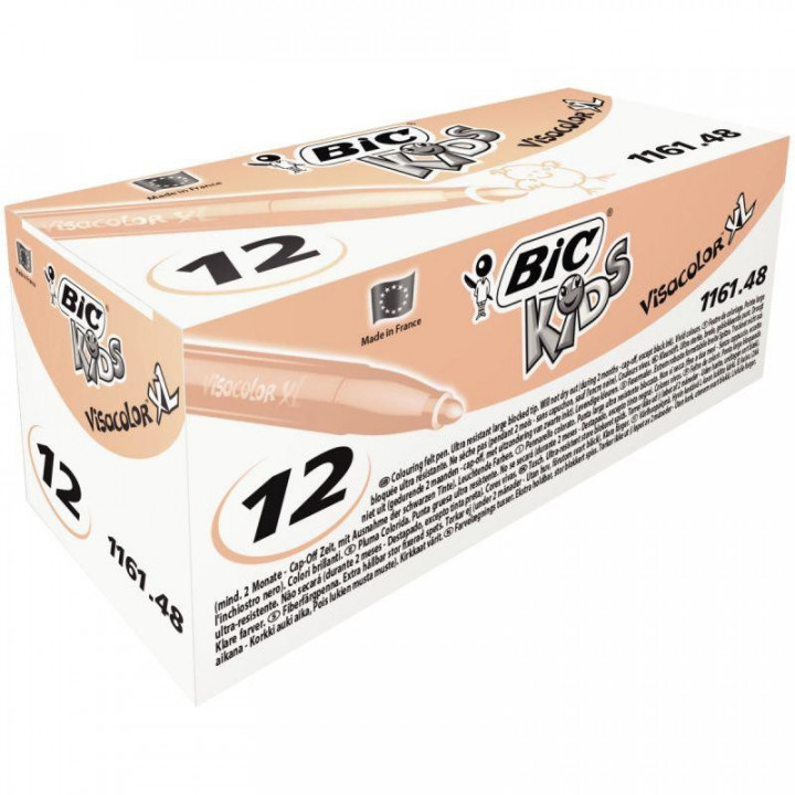 Boîte de 12 feutres Visacolor XL chair. Feutre très longue durée. Pointe bloquée très résistante et indéformable. Ne sèche pas même décapuchonné. Encre lavable sur la plupart des tissus. Capuchon ventilé.