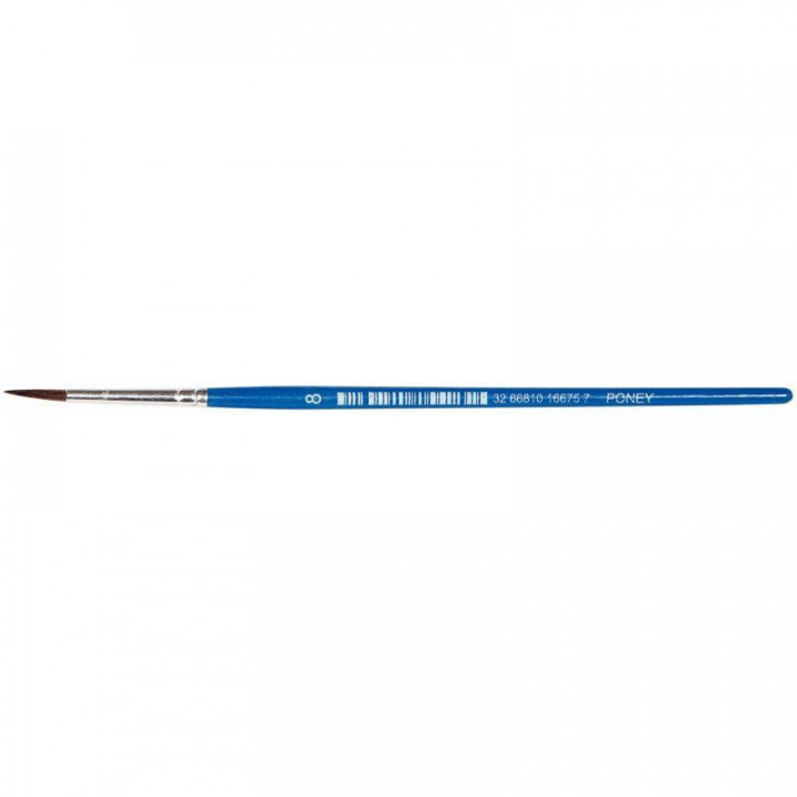 Sac de 10 pinceaux poney n°8. Idéal pour la gouache et l'aquarelle. Le poil de poney est un poil souple et bien absorbant. Il offre une bonne rétention d'eau et convient parfaitement aux techniques humides.