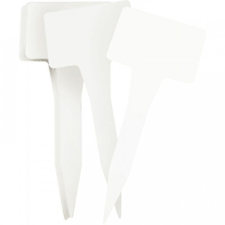 Lot de 10 porte étiquettes pour jardin. En plastique blanc, à personnaliser. Dimensions : l.7.5xH.17.5cm Dimensions étiquette : l.7.5xH.5cm