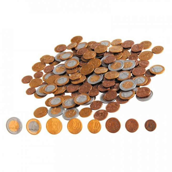 Sachet de 160 pièces de monnaie euro assortis. 20 pièces de chaque : 1 cts, 2 cts, 5 cts, 10 cts, 20 cts, 50 cts, 1€, 2€. Dès 4 ans.