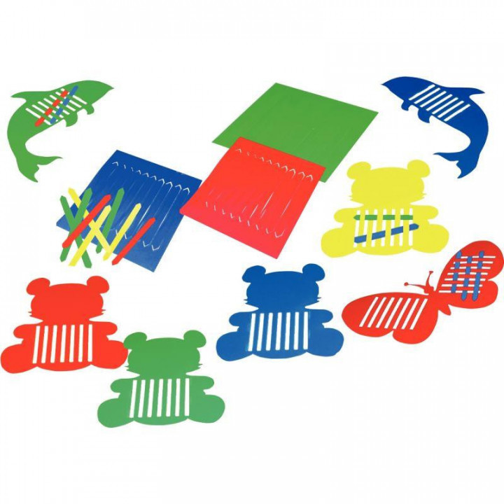 Mon premier tissage. En plastique souple et résistant, lavable à l’eau savonneuse et réutilisable. 12 planches à tisser 16x20cm, 12 animaux prédécoupés à tisser, 15 planches avec 270 bandelettes à tisser multicolores. Livré dans une valisette de rangement. Intérêt pédagogique : coordination, maitrise du geste, et motricité fine. A partir de 3 ans.