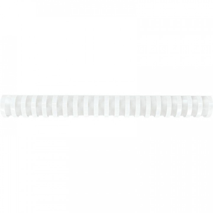 Boîte de 50 reliures plastiques couleur Ø 28mm blanc. 21 anneaux. Longueur 30cm. Capacité 240 feuilles. Pour relier tous documents A4 (21x29,7cm).