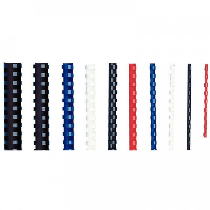 Boîte de 100 reliures plastiques couleur Ø 10mm rouge. 21 anneaux. Longueur 30cm. Capacité 55 feuilles. Pour relier tous documents A4 (21x29,7cm).
