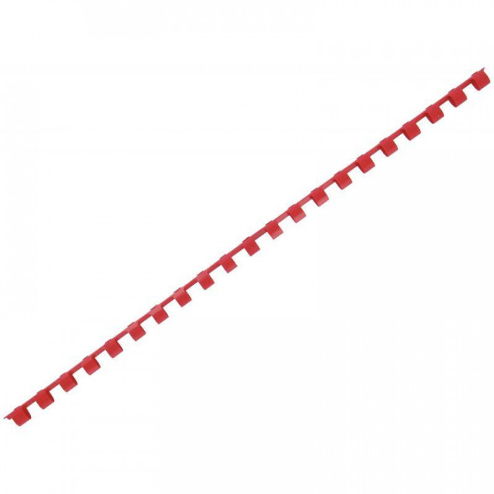 Boîte de 100 reliures plastiques couleur Ø 8mm rouge. 21 anneaux. Longueur 30cm. Capacité 40 feuilles. Pour relier tous documents A4 (21x29,7cm).