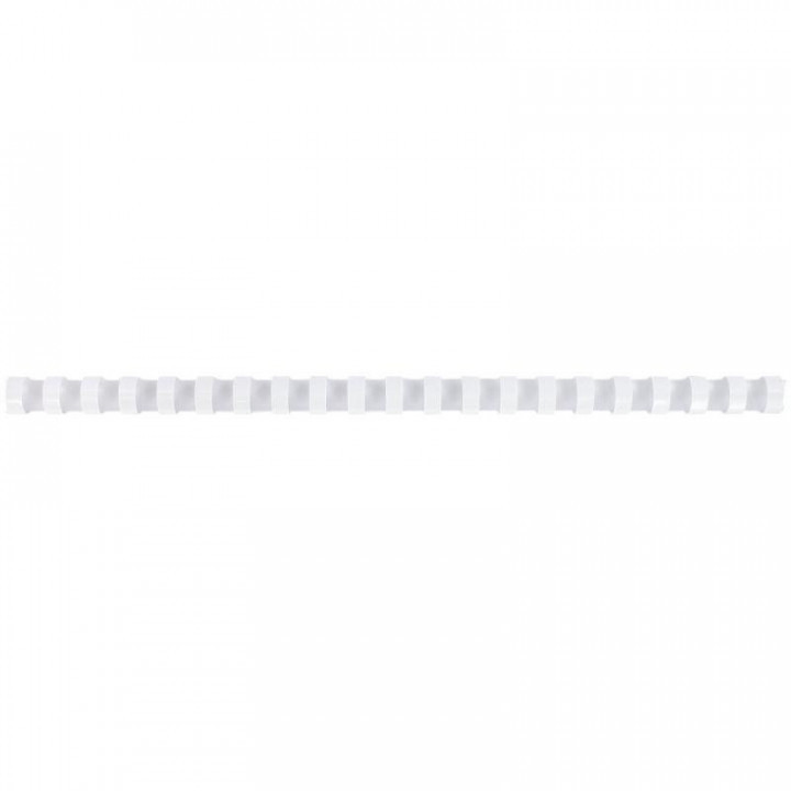 Boîte de 100 reliures plastiques couleur Ø 14mm blanc. 21 anneaux. Longueur 30cm. Capacité 100 feuilles. Pour relier tous documents A4 (21x29,7cm).