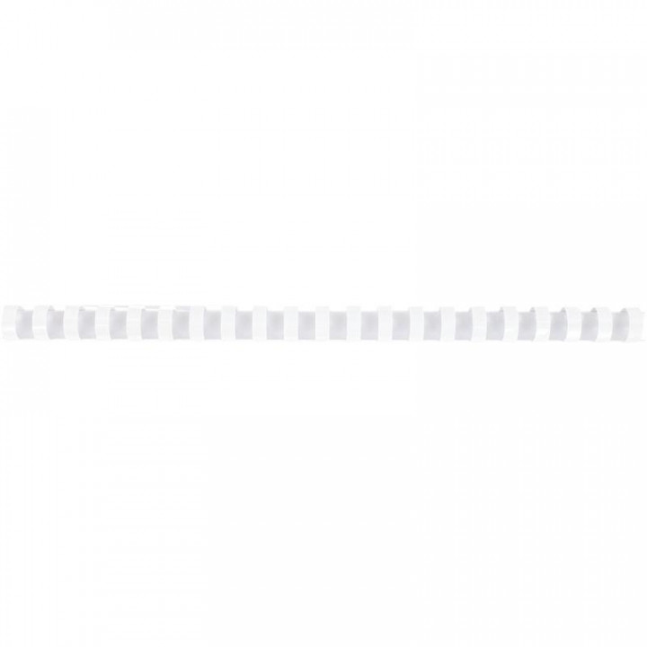 Boîte de 100 reliures plastiques couleur Ø 16mm blanc. 21 anneaux. Longueur 30cm. Capacité 120 feuilles. Pour relier tous documents A4 (21x29,7cm).
