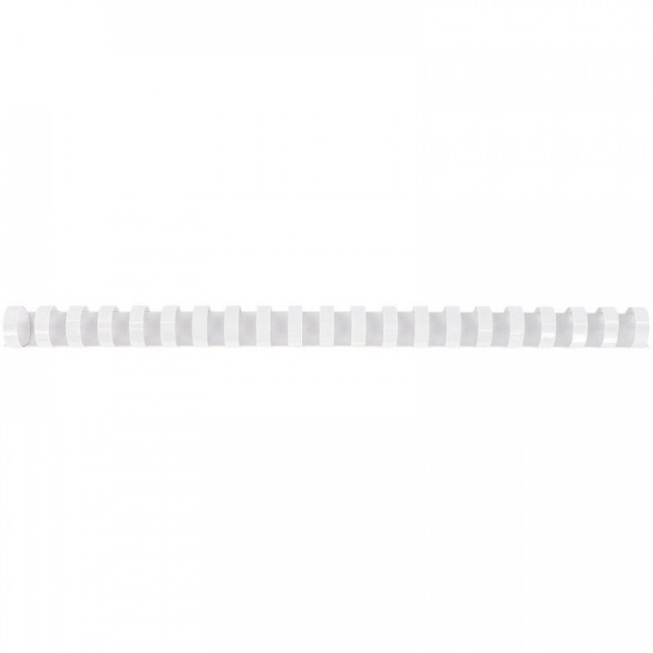 Boîte de 100 reliures plastiques couleur Ø 19mm blanc. 21 anneaux. Longueur 30cm. Capacité 150 feuilles. Pour relier tous documents A4 (21x29,7cm).