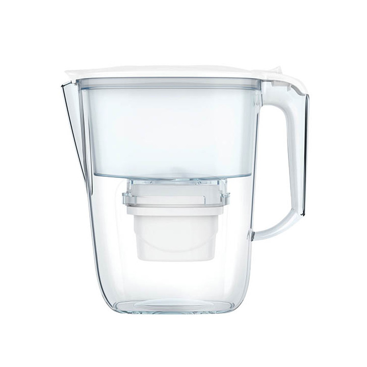 Carafe Filtrante. Carafe 2.5 L pour filtrer 1.20L. Ouverture une main, Application LS SMART pour gérer le remplacement de la cartouche. Réduit les impuretés, chlore, calcaire, herbicides, pesticides, métaux lourds, microplastiques.... Capacité de la cartouche 120 L filtrés. Compatible lave vaisselle. Livrée avec un filtre.