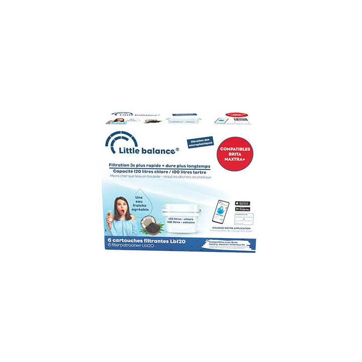 Pack 6 cartouches filtrantes pour /58373. Cartouche avec filtration rapide pour une composition minérale et équilibré. Réduit les impureturéschole, calcaire, herbicides, pesticides, métaux lourds, microplastiques.... Capacité de la cartouche 120 l filtrés en chlore et 100l calcaire. Compatible avec BRITA