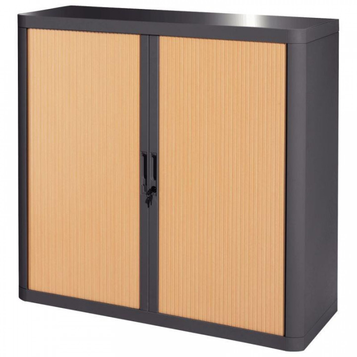 Armoire à rideaux 2 tablettes corps anthracite/rideaux hêtre. Dim ext H104xL110xP41.5cmLivrée à platMontage facile en 2 minutes sans outil ni vis